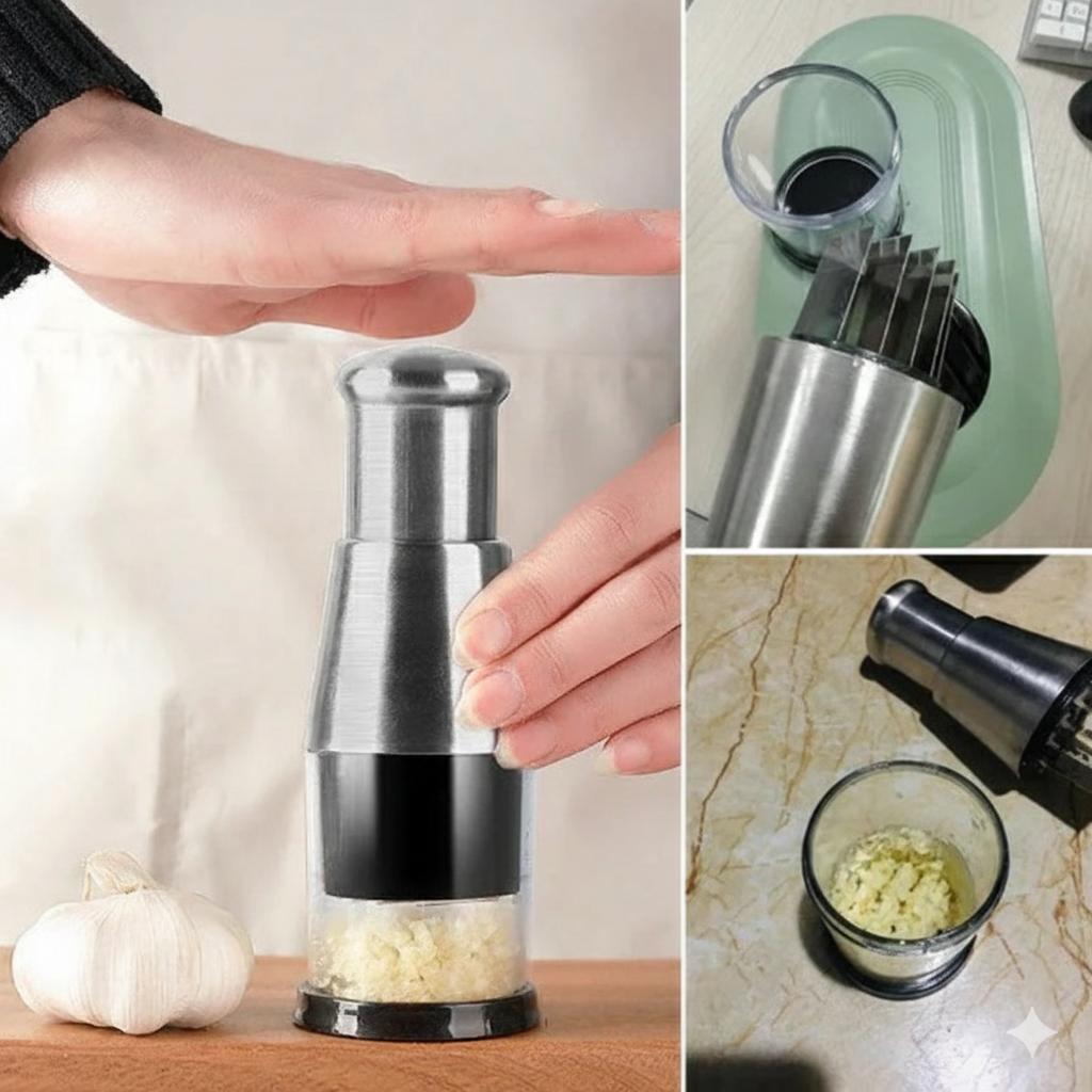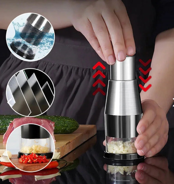 Su cuchilla afilada permite picar ajo, cebolla, verduras y hierbas en segundos, solo presionando con la palma de la mano. Ideal para quienes buscan rapidez, comodidad y menos esfuerzo al cocinar.